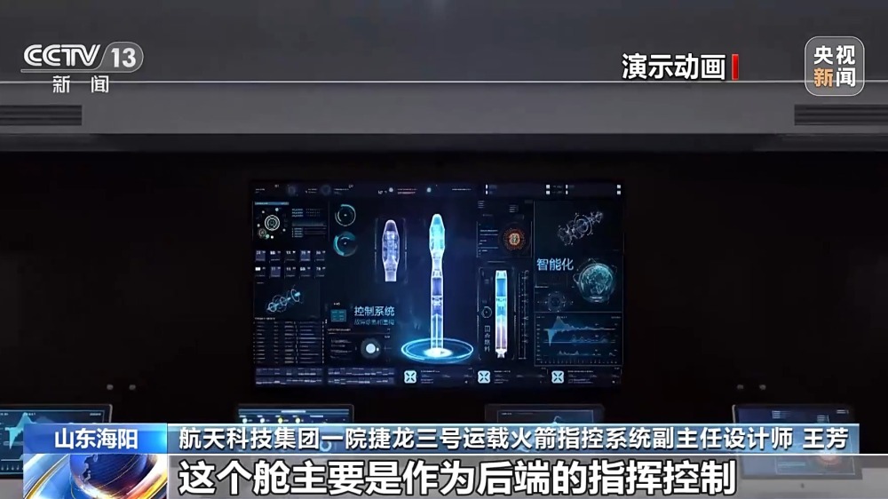 航天科技集團(tuán)一院捷龍三號運(yùn)載火箭指控系統(tǒng)副主任設(shè)計師 王芳:這個艙主要是作為后端的指揮控制,還有一個狀態(tài)的監(jiān)測。