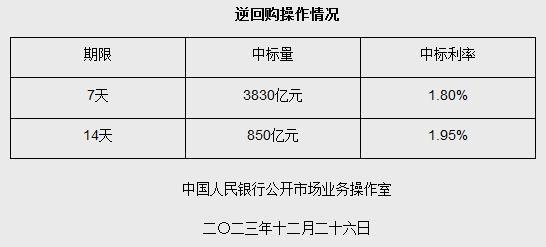 中新網(wǎng)12月26日電 據(jù)央行網(wǎng)站消息,為維護(hù)年末流動(dòng)性合理充裕,2023年12月26日人民銀行以利率招標(biāo)方式開展了4680億元7天期和14天期逆回購操作。具體情況如下: