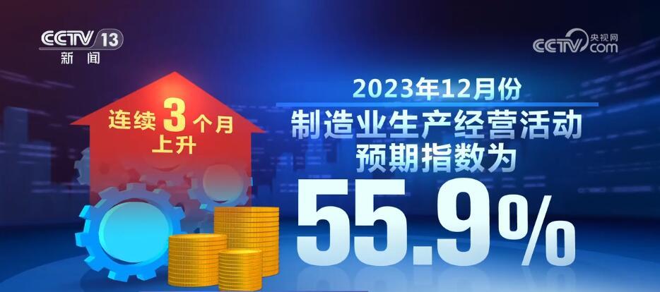 數(shù)據(jù)顯示,2023年12月份,制造業(yè)生產(chǎn)經(jīng)營活動預(yù)期指數(shù)為55.9%,連續(xù)3個月上升,表明制造業(yè)企業(yè)對市場發(fā)展信心不斷增強。2023年12月份,高技術(shù)制造業(yè)和裝備制造業(yè)采購經(jīng)理指數(shù)分別為50.3%和50.2%,繼續(xù)保持?jǐn)U張。