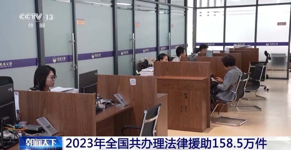 2023年,全國司法行政機(jī)關(guān)辦理法律援助158.5萬件、公證1325.5萬件、仲裁51.5萬件、司法鑒定342.5萬件,群眾法治獲得感切實增強(qiáng)。