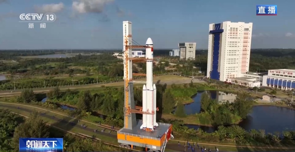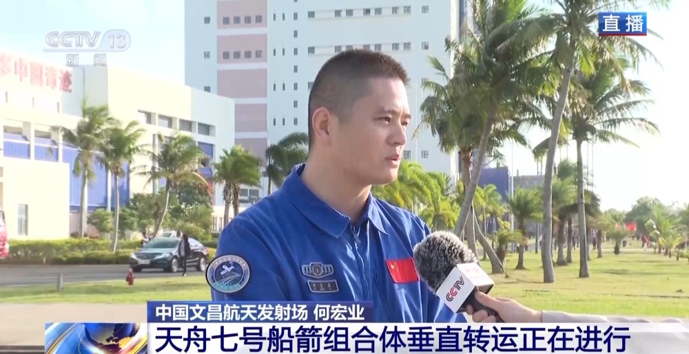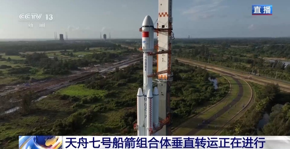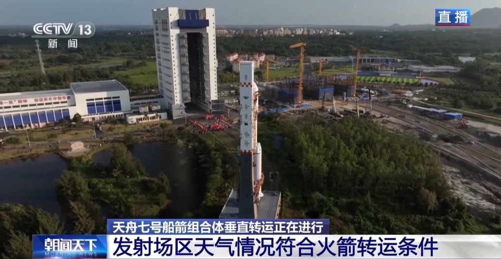 天舟七號船箭組合體垂直轉運正在文昌航天發(fā)射場進行