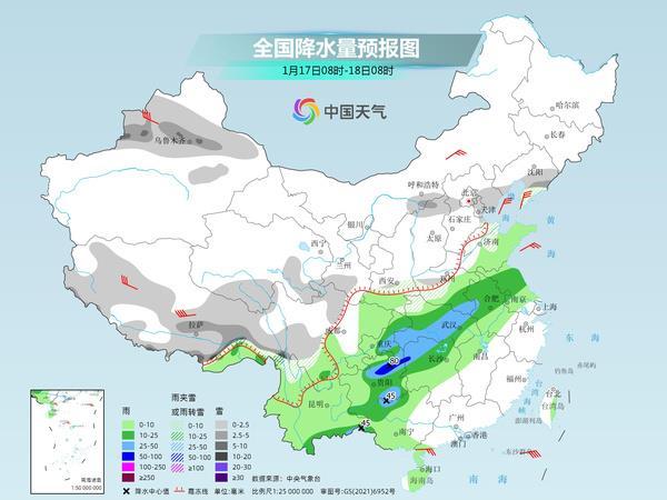 后天,新疆沿天山地區(qū)、內蒙古中部偏南地區(qū)、西藏中南部、青海南部、甘肅南部、遼寧南部、山東北部、陜西南部、河南西部、云南西北部等地的部分地區(qū)有小到中雪或雨夾雪;其中西藏東部、云南西北部等地局地大到暴雪;西南地區(qū)東部、黃淮中南部、江淮、江漢、江南北部和西部、華南西部、云南等地部分地區(qū)有小到中雨,其中重慶東南部、河南東南部、湖北東部和南部、湖南西北部、貴州中東部、云南東南部等地的部分地區(qū)有大雨,局地暴雨。