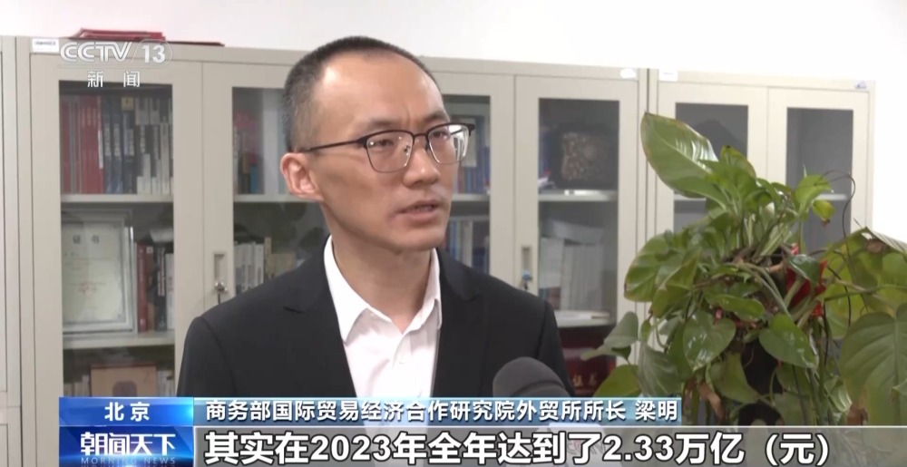 商務(wù)部國(guó)際貿(mào)易經(jīng)濟(jì)合作研究院外貿(mào)所所長(zhǎng) 梁明:(我們的)跨境電商,在2023年全年達(dá)到了2.33萬億,同比增長(zhǎng)15.6%,比去年增速是加快了5.8個(gè)百分點(diǎn)?!靶氯龢印蔽覀円彩鞘状瓮黄?萬億,增速是接近30%。