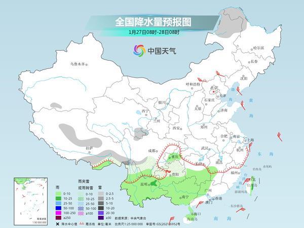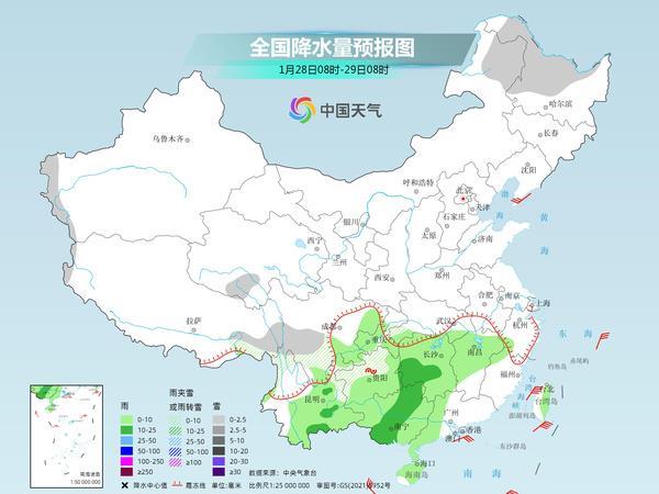 氣象專家提醒,春運首日,我國降水不多,主要出現(xiàn)在西南一帶,貴州西部、云南東部局地可能出現(xiàn)凍雨。不過,隨著降水逐漸向東擴展,南方新一輪大范圍降水過程即將上線。展望后期,29日江南、華南降雨將明顯增多增強,31日前后北方降雪也將增多。春運期間探親旅游出行集中,建議公眾關(guān)注臨近預(yù)報,合理安排出行計劃,注意交通安全。