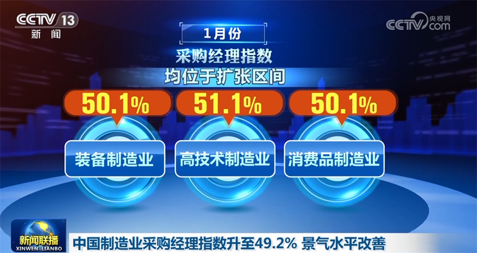 中國物流與采購聯(lián)合會(huì)、國家統(tǒng)計(jì)局服務(wù)業(yè)調(diào)查中心1月31日公布,1月份中國制造業(yè)采購經(jīng)理指數(shù)為49.2%,較上月回升0.2個(gè)百分點(diǎn),結(jié)束了連續(xù)3個(gè)月下降勢頭,景氣水平有所改善。