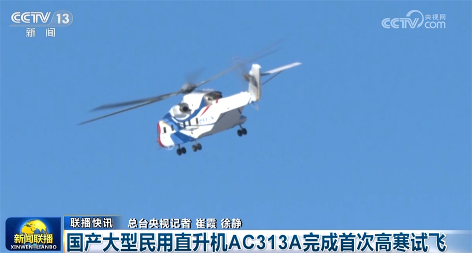 航空工業(yè)集團(tuán)1月31日宣布,我國自主研制的大型民用直升機(jī)AC313A在漠河完成了首次高寒試飛,對直升機(jī)極限飛行速度、動(dòng)力系統(tǒng)的低溫啟動(dòng)試驗(yàn)等進(jìn)行了驗(yàn)證。AC313A直升機(jī)可滿足我國全疆域范圍內(nèi)的森林消防、搜索救援等多領(lǐng)域使用要求。