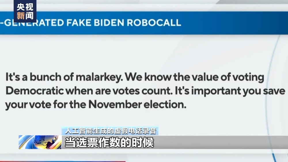 人工智能生成的虛假電話錄音:真是一派胡言,當(dāng)選票作數(shù)的時候,我們就能知道民主投票的價(jià)值了。你要把選票留到11月再投。