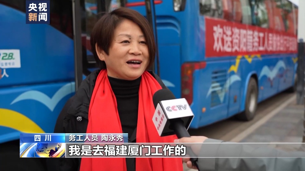 務(wù)工人員 陶永秀:我是去福建廈門工作的,往年自己出去買車票很難買,今年有返崗專車,很感謝。