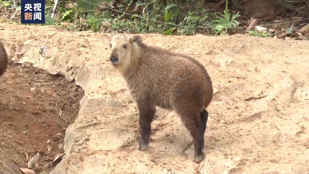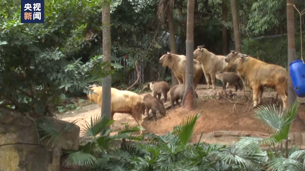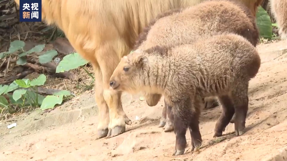 金毛羚牛是我國一級保護動物。近日,在廣州長隆野生動物世界,一對雙胞胎金毛羚牛幼崽跟隨媽媽順利回到族群。
