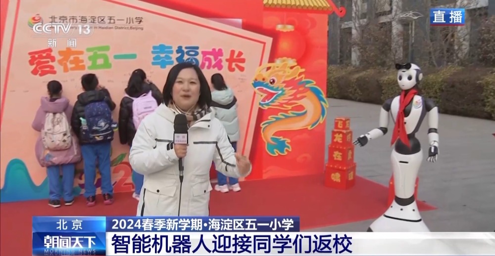 今天(2月26日)早上,除了老師們早早在校門口迎接孩子們以外,還有一位“新伙伴”,就是智能機器人,也吸引了很多同學跟他對話、合影。