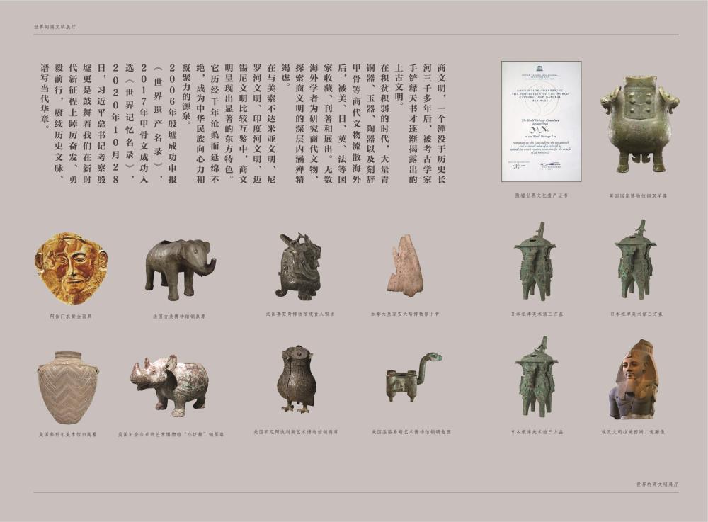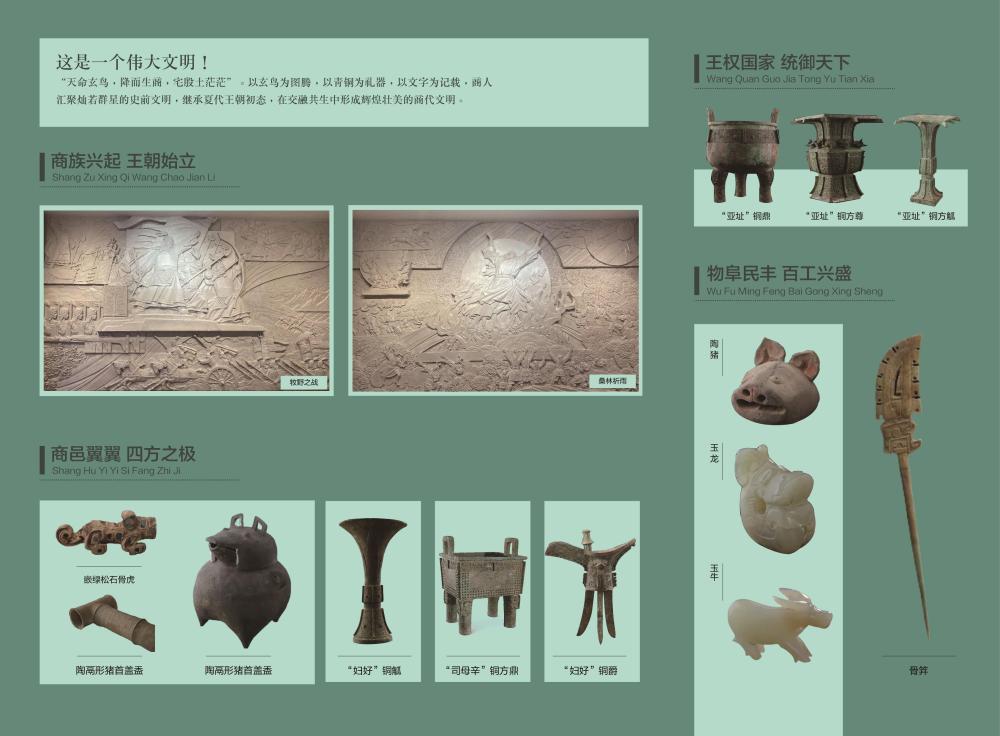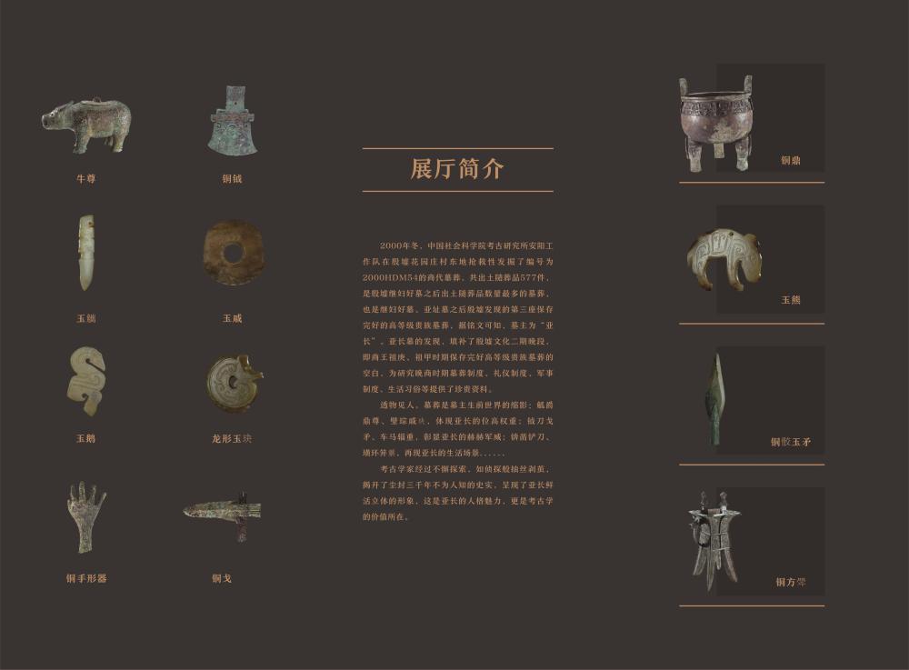 基本陳列將長期對公眾開放,展示幾代殷墟考古人接力前行、不斷求索,取得了一次又一次重要發(fā)掘成果,對夏商都邑的深入研究,為不同時期不同區(qū)域的商文化研究提供了對比標(biāo)尺。眾多首次亮相的各類珍貴文物再現(xiàn)了商朝繁盛的城市文明,完善的禮樂文明、發(fā)達的青銅文明、燦爛的文字文明以及高超的科技文明。全面系統(tǒng)地展現(xiàn)了我國商代晚期都城的風(fēng)貌,讓全世界看到一個中華文明早期發(fā)展階段最為輝煌的時代——大邑商。
