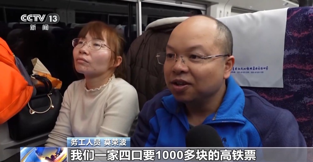 務工人員 莫榮波:我們一家四口要1000多塊的高鐵票,有了這個(專列),我就節(jié)省開支了。