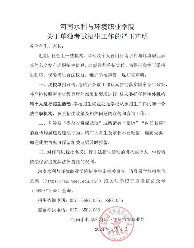 河南多所學(xué)校就單獨(dú)考試招生工作發(fā)布嚴(yán)正聲明