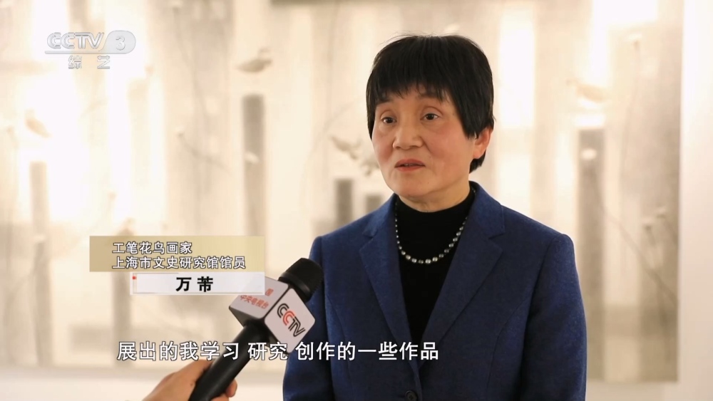 工筆花鳥(niǎo)畫(huà)家 上海市文史研究館館員 萬(wàn)芾:實(shí)際上展覽的這個(gè)時(shí)間度是跨越了有四十多年,展出的我學(xué)習(xí)、研究、創(chuàng)作的一些作品。我是和策展人一起商量,把自己從學(xué)習(xí)到成為一個(gè)女性藝術(shù)家這個(gè)經(jīng)歷做一個(gè)梳理,以及我畫(huà)的一些跨界的一些創(chuàng)作,甚至還有我和學(xué)生合作的一些衍生品,這是三個(gè)部分,完全不一樣的內(nèi)容來(lái)展現(xiàn)給大家。