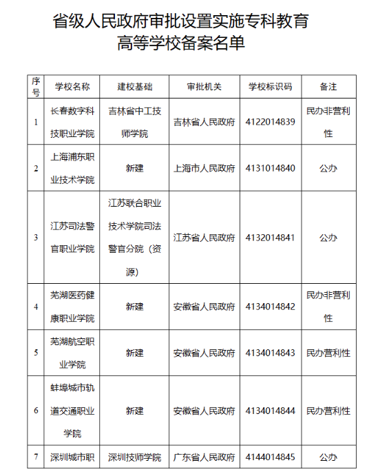 央廣網(wǎng)北京3月25日消息(記者馮儀) 近日,教育部根據(jù)《中華人民共和國高等教育法》《普通高等學(xué)校設(shè)置暫行條例》等有關(guān)法律法規(guī)和政策文件的規(guī)定,將省級人民政府審批新設(shè)的專科層次高等學(xué)校備案名單予以公布。