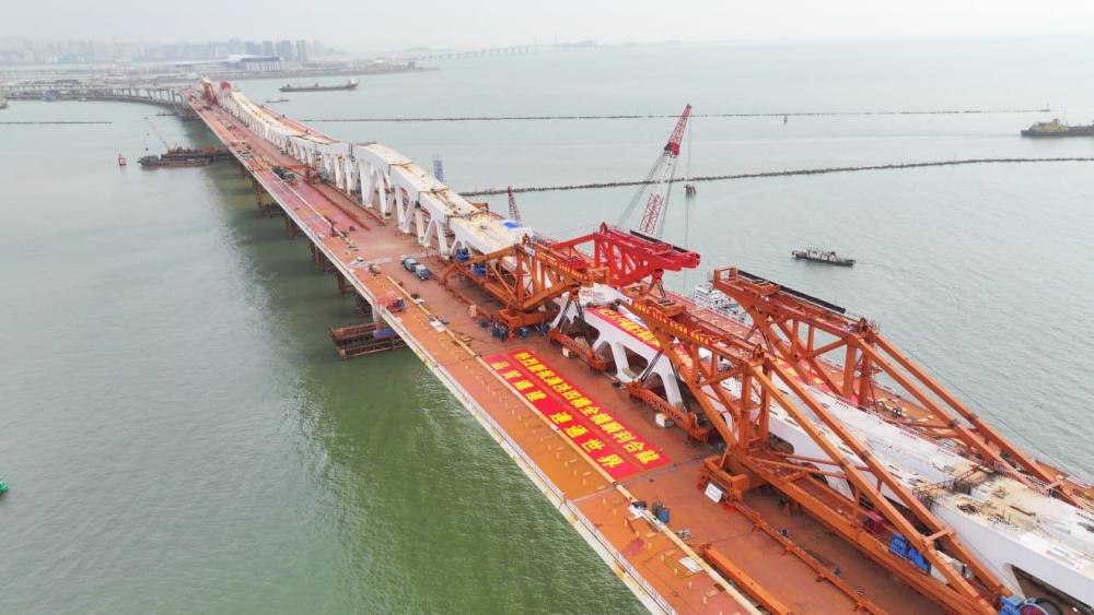 澳氹第四條跨海大橋連接澳門新城填海A區(qū)、填海E區(qū)以及港珠澳大橋人工島口岸區(qū),是構(gòu)建澳門城市交通體系的關(guān)鍵節(jié)點(diǎn)。該大橋于3月12日順利實(shí)現(xiàn)全橋合龍,由主體結(jié)構(gòu)工程全面邁入橋梁附屬結(jié)構(gòu)工程。(總臺記者 劉冰清)
