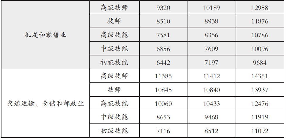 完整數據可見北京市人力資源和社會保障局官方網站。