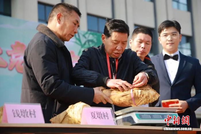 中新網(wǎng)南平1月19日電(廖敏愷 宗治明 陳沁林)“圍徑46.2厘米,重5.55斤,夏墩村獲得第一名!”隨著專家評(píng)定結(jié)果揭曉,福建南平順昌縣嵐下鄉(xiāng)郭巖廣場(chǎng)瞬間沸騰,游客紛紛舉起手機(jī)記錄“筍王”風(fēng)采。種植戶劉樂明難掩激動(dòng):“我們的筍來自自家山林,自然生長(zhǎng)、品質(zhì)上乘!”
