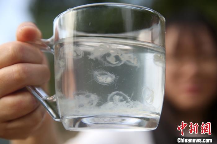 桃花水母游弋在四川省內(nèi)江市東興區(qū)平坦鎮(zhèn)姜家村蛟龍湖水庫(kù)?!√m自濤 攝