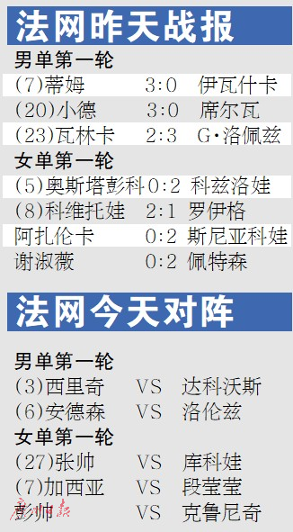 前賽會(huì)冠軍瓦林卡止步法網(wǎng)首輪