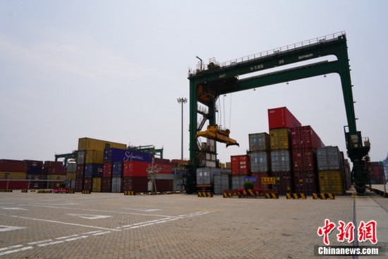 天津港太平洋國際集裝箱碼頭,繁忙的作業(yè)區(qū)。記者 劉湃 攝