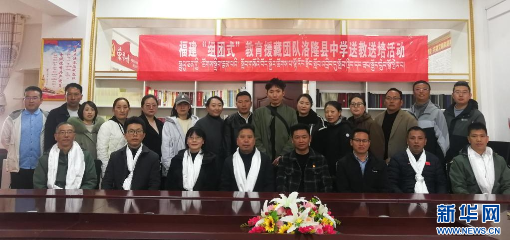 西藏昌都洛隆縣中學(xué)領(lǐng)導(dǎo)和加入閩昌名師工作室的老師,與福建“組團(tuán)式”教育援藏團(tuán)隊“送教送培”小分隊合影。5月10日攝