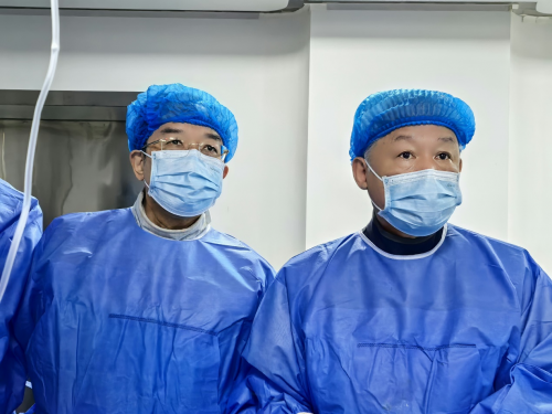 義診現(xiàn)場(chǎng)?。⊥鮽ッ窠淌谂c張大東教授為確診患者實(shí)施介入手術(shù)