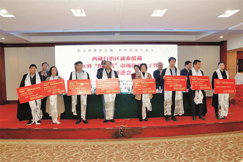 西藏就業(yè)援藏暨區(qū)外“組團(tuán)式”市場化就業(yè)工作推進(jìn)會現(xiàn)場。