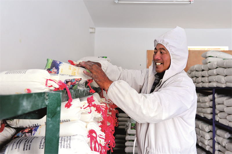 如今,在西德稞原地食品有限公司的帶動下,久美拉姆家種的青稞根本不愁銷路。2021年,公司以每畝170斤、一斤2.5元的價格對全村青稞進行統(tǒng)一收購,每斤收購價高于市場價0.5元。同時,在村委會的統(tǒng)一安排下,久美拉姆每個月會去公司上幾天班,除了工資外,年底還能享受到公司的分紅。“公司每年輪流安排村民前來務(wù)工,累計安排村民235人次,實現(xiàn)勞務(wù)創(chuàng)收33萬元,人均增收1000元左右。”旦增頓珠介紹,在公司帶動下,普蘭全縣推廣種植白青稞3100余畝,參與群眾達200多戶,實現(xiàn)群眾增收100萬元,脫貧戶實現(xiàn)種植收入30多萬元。近年來,隨著西德稞原地食品有限公司不斷發(fā)展壯大,西德村群眾的致富途徑日益寬廣,步入了種植增收、務(wù)工增收、分紅增收等多種增收方式鋪就的康莊大道,形成了以產(chǎn)業(yè)為支撐的長效增收機制。