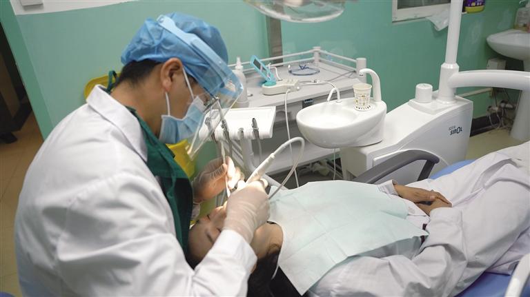 天津市第十批援藏干部、昌都市藏醫(yī)院口腔科副主任醫(yī)師杜斌正在對(duì)患者開(kāi)展口腔治療。記者 貢曲羅杰 鄭常容