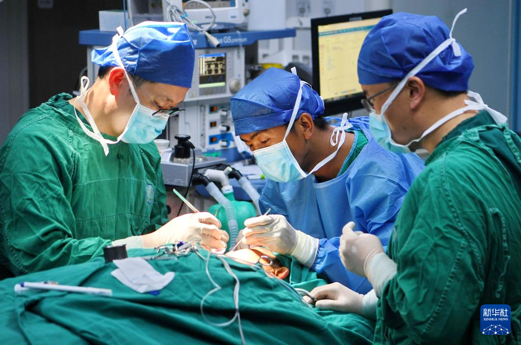8月29日,王克明博士(左)和西藏自治區(qū)人民醫(yī)院醫(yī)生為患者實施手術。新華社記者 張汝鋒 攝