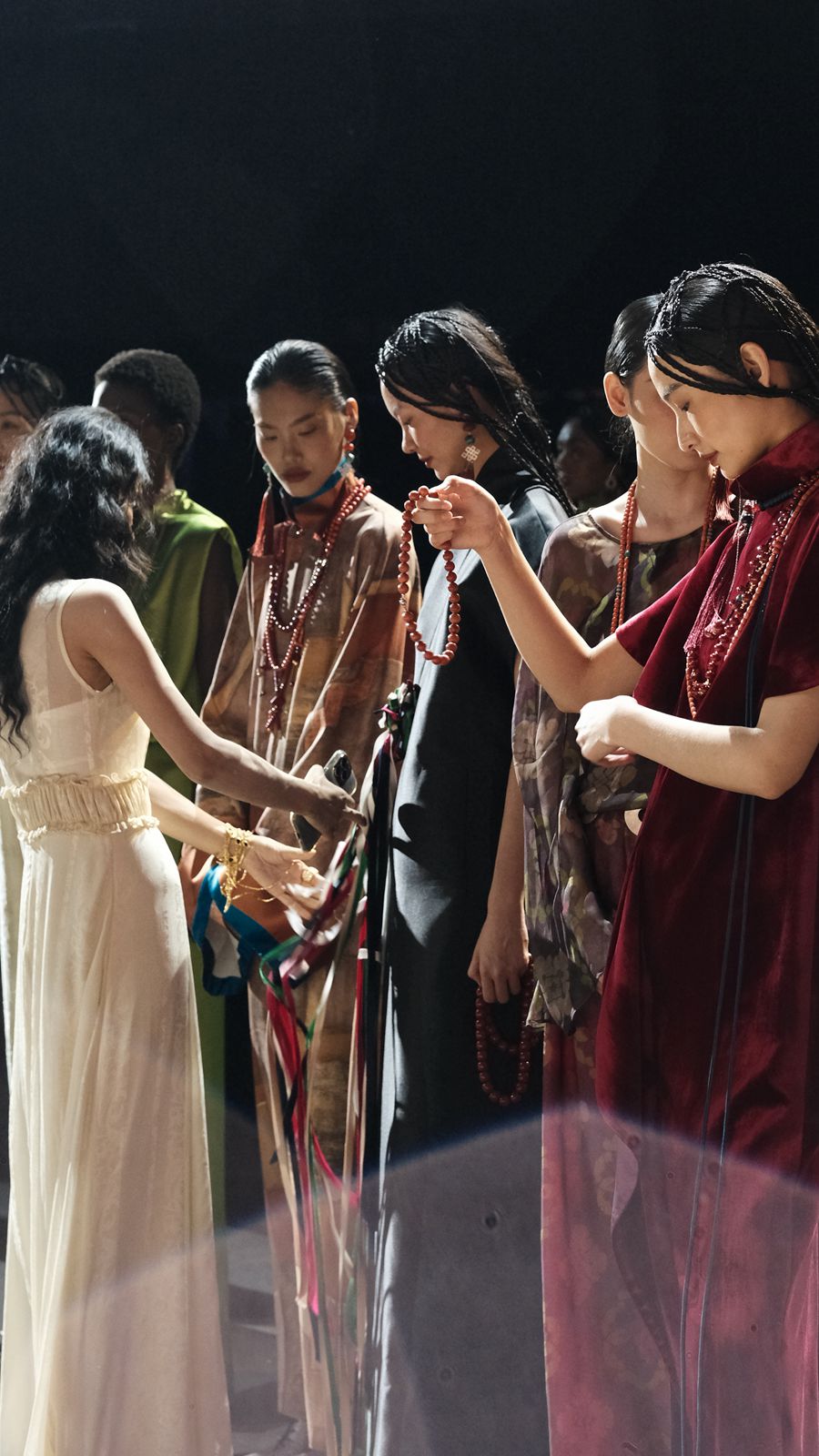 素白在中國國際時(shí)裝周發(fā)布2025春夏新品的當(dāng)天,是品牌創(chuàng)始人馬乖的生日。這場秀像是設(shè)計(jì)師前半途的答卷,在品牌的重要節(jié)點(diǎn)打下了扎實(shí)的“結(jié)”,創(chuàng)立于2020年,第一個(gè)亮相時(shí)裝周的湖南原創(chuàng)品牌,創(chuàng)立之初,品牌的影響力完全來自于互聯(lián)網(wǎng),在湖南株洲的服飾熱土上,有得天獨(dú)厚的市場集群優(yōu)勢,在傳統(tǒng)服飾資源的滋養(yǎng)下,“爆款”道路輕車熟路,但是馬乖沒有急于“收割”,而是耐心走出了另一條路:推動(dòng)民族文化基因的時(shí)尚化再生,讓原創(chuàng)品牌在中國式現(xiàn)代化進(jìn)程中被賦予新的內(nèi)容和發(fā)展路徑。