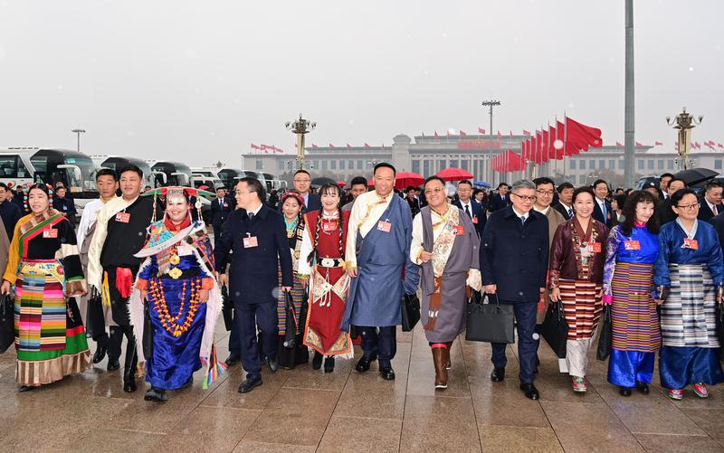 3月5日上午,十四屆全國(guó)人大二次會(huì)議在北京人民大會(huì)堂開幕。來自西藏自治區(qū)的全國(guó)人大代表們滿懷信心步入人民大會(huì)堂。記者 旦增西旦 攝