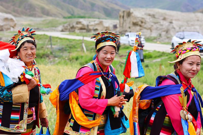 7月21日,西藏山南市瓊結(jié)縣瓊結(jié)鎮(zhèn)雪巴村民參加“望果節(jié)”祈福,預(yù)祝農(nóng)業(yè)豐收,歌頌美好生活。圖為望果節(jié)上轉(zhuǎn)田的當(dāng)?shù)貗D女。記者 白瑪澤旺 通訊員 倫珠澤仁 攝