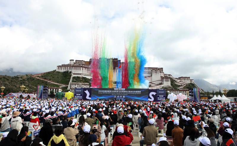 8月21日上午,2024中國(guó)西藏第五屆跨喜馬拉雅國(guó)際公路自行車極限賽在布達(dá)拉宮廣場(chǎng)開幕。記者 白瑪澤旺 攝