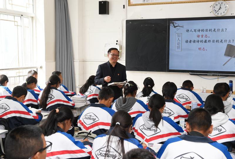 今年是對(duì)口支援西藏工作30周年。圖為江蘇省援藏教師、拉薩江蘇實(shí)驗(yàn)中學(xué)校長(zhǎng)殷飛正在授課。記者 旦增蘭澤 攝