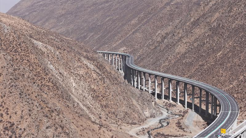 12月18日,西藏S5線拉薩至澤當(dāng)快速公路正式通車試運(yùn)營(yíng)。圖為拉薩至澤當(dāng)快速公路俯瞰圖。記者 洛桑平措