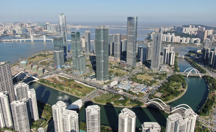 2024年11月26日拍攝的橫琴金融島(無(wú)人機(jī)照片)。新華社記者 鄧華 攝