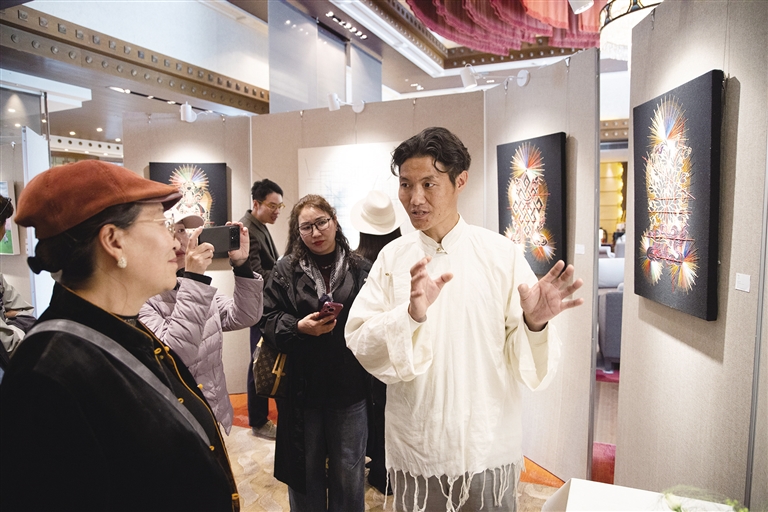開幕儀式上,亞東縣委常務(wù)副書記、常務(wù)副縣長(zhǎng),上海市第十批援藏干部人才亞東聯(lián)絡(luò)小組組長(zhǎng)李夏陽(yáng)在致辭中表示,三十年間,在多批援藏干部的不懈努力與無私奉獻(xiàn)下,亞東縣在穩(wěn)定、發(fā)展、生態(tài)、強(qiáng)邊等各項(xiàng)工作上都取得了顯著成效,對(duì)本次參展藝術(shù)家們?yōu)閬問|縣文化傳播的傾情助力,致以誠(chéng)摯的感謝。藝術(shù)家索喃次仁表示,未來將持續(xù)致力于將傳統(tǒng)技藝與現(xiàn)代審美融合,讓古老手工藝煥發(fā)新生,以藝術(shù)賦能助力鄉(xiāng)村振興。