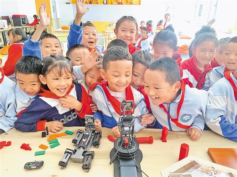 在桑珠孜區(qū)青島小學的科學課堂上,智能實驗臺前圍滿了興致勃勃的孩子,他們手持 3D 打印筆,精心繪制著心中的“太空基地”。作為西藏首個啟動“ STEM ”科學課程的地區(qū),這里不僅建成了全區(qū)首個小學科創(chuàng)實驗室,還被教育部認定為西藏唯一的全國“白名單”科創(chuàng)賽事基層組織單位?!耙郧埃⒆觽冎荒軓恼n本上了解實驗,現(xiàn)在能親手操作機器人、設計航天模型?!鼻鄭u小學黨支部書記周杰介紹道??苿?chuàng)課程的開展,如同一把鑰匙,打開了孩子們創(chuàng)新思維和科學探索的大門,為高原青少年搭建起展示科學素養(yǎng)與創(chuàng)新能力的舞臺,推動當?shù)亟逃聵I(yè)邁向新高度。