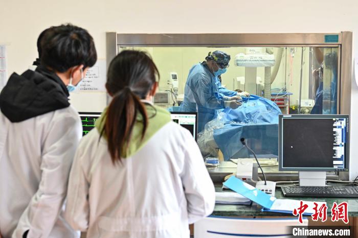 在西藏林芝市人民醫(yī)院的介入手術(shù)室里,心內(nèi)科醫(yī)生普布扎西為一名冠心病患者進行冠狀動脈造影及支架植入術(shù),“這項手術(shù)對于林芝市是實現(xiàn)‘由無到有’的過程,以急性心梗為例,此前對于急性心梗只能進行保守治療,這樣帶來很多不足,包括患者容易錯過最佳的治療時間窗口,有些患者還需要到內(nèi)地其他城市就醫(yī),家庭也因此背上沉重負擔,如今患者從進入醫(yī)院大門到搶救成功,最快只需要18分鐘”。