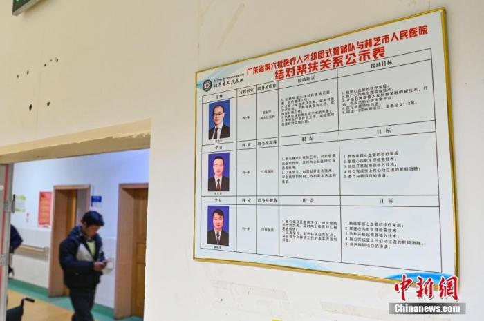 圖為2020年12月21日,西藏林芝市人民醫(yī)院內的墻面上張貼著“廣東省第六批醫(yī)療人才組團援藏隊與林芝市人民醫(yī)院結對幫扶關系公示表”。 中新社記者 陳驥旻 攝
