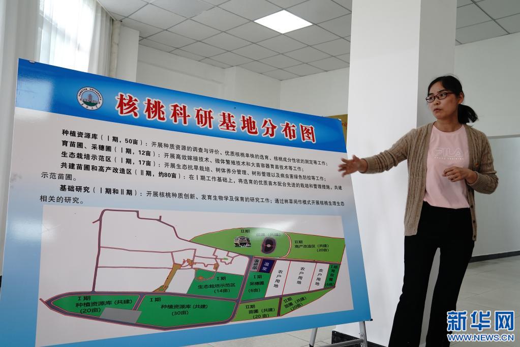 長(zhǎng)江大學(xué)教師劉利平博士介紹核桃產(chǎn)業(yè)項(xiàng)目(2021年7月8日攝)。新華社記者 劉洪明 攝