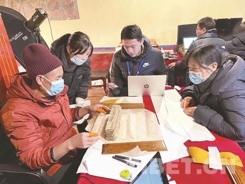 圖為工作人員對(duì)古籍文獻(xiàn)進(jìn)行登記、整理、分類(lèi)、對(duì)勘 西藏自治區(qū)文物局供圖