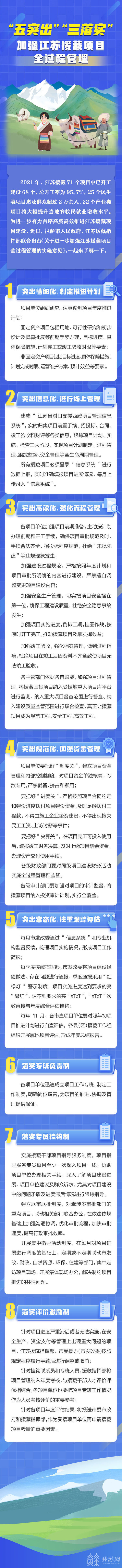 “十四五”期間,拉薩市人民政府、江蘇援藏指揮部將對江蘇援藏項目全程管理、高效推進,研究發(fā)布《關(guān)于進一步加強江蘇援藏項目全過程管理的實施意見》,推出專班制負責項目實施、精細化制定推進計劃、信息化規(guī)范項目管理、全流程強化項目管理、掛鉤式跟蹤指導服務、全方位加強資金管理、常態(tài)化注重績效評估、多維度運用評價成果等8項扎實舉措,高質(zhì)量推進江蘇援藏項目建設(shè),提升對口支援的綜合成效。