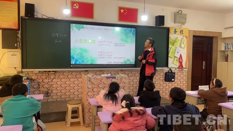 圖為2022年4月10日,韓軍峰為革吉縣完全小學(xué)畢業(yè)班的同學(xué)們上主題班會