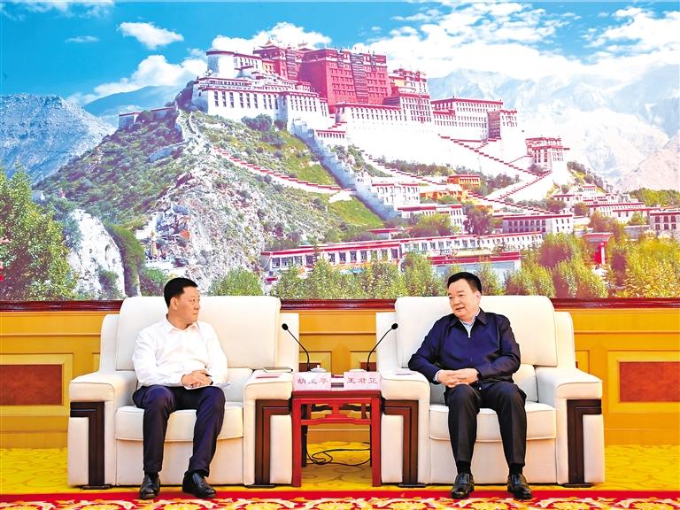 9月9日至13日,吉林省黨政代表團(tuán)來(lái)藏考察。自治區(qū)黨委書(shū)記王君正與吉林省委副書(shū)記、省長(zhǎng)胡玉亭一行座談。