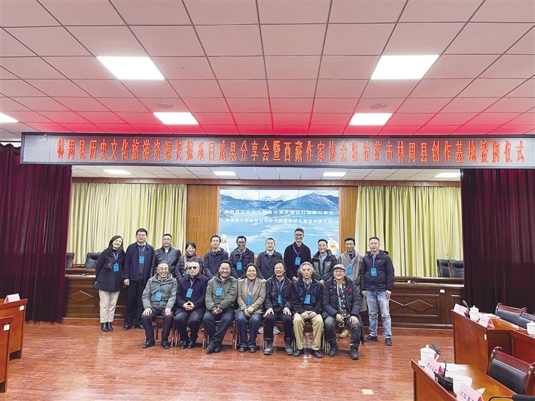 分享會后,西藏作家協(xié)會駐拉薩市林周縣創(chuàng)作基地揭牌?!敖裉炻犕陮<覍W者們的講述,對林周有了新的認識,今后也將邀請更多區(qū)內(nèi)外的作家到林周進行采風,以林周縣歷史文化、民風民俗為題材創(chuàng)作出更多優(yōu)秀作品,助力林周縣文旅產(chǎn)業(yè)發(fā)展?!蔽鞑刈鲄f(xié)常務副主席次仁羅布說。