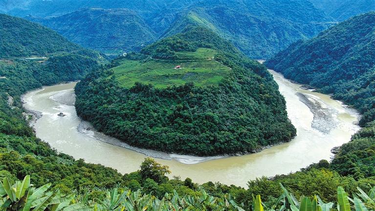 其實(shí),果果塘大拐彎里還藏著一枚新年大型“彩蛋”——這里又稱作雅魯藏布江蛇形大拐彎。由雪域高原的百川匯流而成的雅魯藏布江,在果果拉山附近繞了一個(gè)大彎。站在德興鄉(xiāng)的觀景臺(tái)上眺望,人們便會(huì)發(fā)現(xiàn)這里宛如一條碧青的長蛇盤踞在蒼翠茂盛的雨林之間,蔚為壯觀。