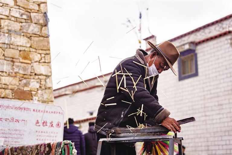有人說,西藏的春天、夏天和秋天屬于格?;?,而冬天則屬于“羅薩梅朵”。對于桑木村的村民來說,“羅薩梅朵”不僅帶來收入,更是一種對傳統(tǒng)文化的堅守和熱愛。每年,村民們將一整間房的金黃麥穗和青稞穗備好,隨后拿出來一一上色。房內的麥穗越來越少,村民的腰包越來越鼓,大街小巷里越來越多的人手里拿著色彩繽紛的“羅薩梅朵”,臉上洋溢著幸福的笑容。